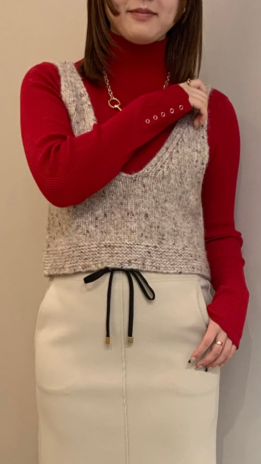 シンプルな形のニットキャミは、旬なスタイリングに欠かせないアクセサリーアイテム。