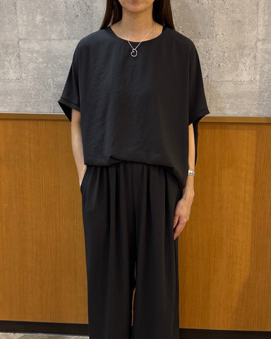 上品な印象ながら、Tシャツのように気軽に着用いただけるアイテムです。リラックス感のあるコクーンシルエットが、体のラインを隠して、スタイルアップを叶えてくれます。